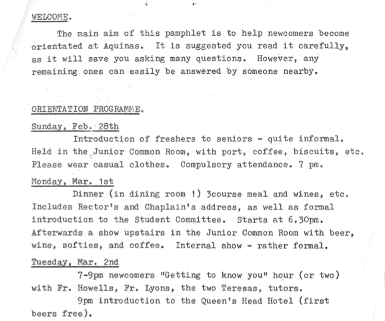 Needless to say, much has changed since O’Week 1993: most days in the current O’Week are non-drinking, and even then, half the pubs that used to be on the O’Week Pub Crawl have, like the Darling Cellar, been closed down. Happily, if the paper goes into the printer crooked nowadays, it self-corrects, rather than presenting a Pub Crawl program on an angle. Whatever the era however, the desire to ‘Win Back the Cup’ still burns bright in the heart of Aquinians, and, even if you still have questions, they will still be ‘easily answered by someone nearby.’ Once an Aquinian, always an Aquinian…